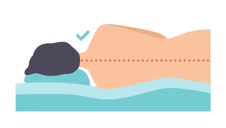 仰卧时枕头的高度不宜过高或过低,并且枕头需要放置到整个颈椎后侧,完全承托我们的颈椎,让其更好地放松。推荐的枕头高度:压实后,高度比我们的拳头等高或略高为宜。